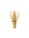 Taillé dans un seul morceau de bambou, le fouet à matcha ("chasen" en japonais) est l’outil traditionnel utilisé pour émulsionner la poudre de matcha avec l’eau chaude. Ses fines branches permettent d’obtenir une texture lisse et une belle mousse.